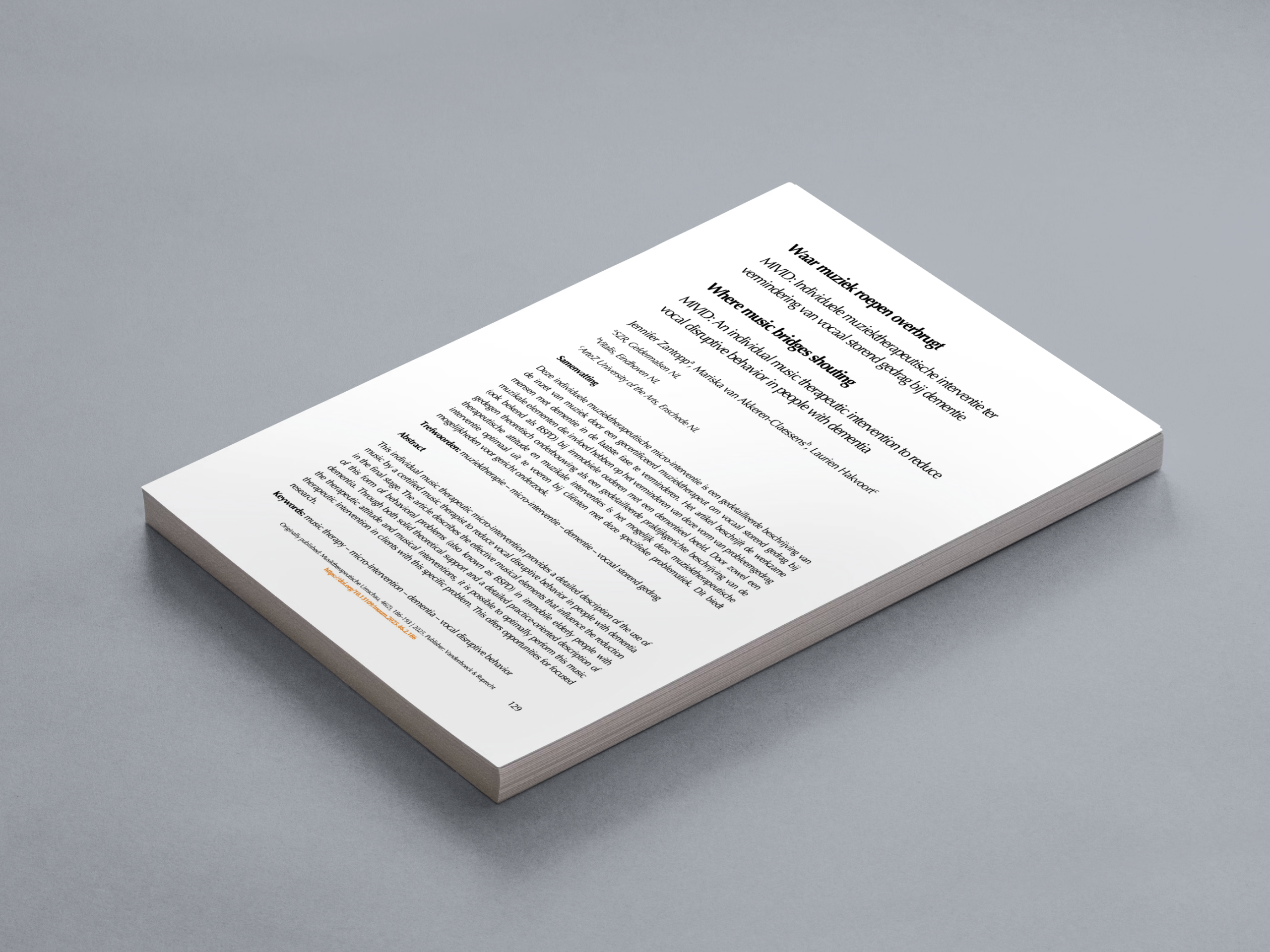 In samenwerking met Laurien Hakvoort hebben zij de micro-interventie nu ook uitgewerkt tot een publicatie in het Musiktherapeutische Umschau.